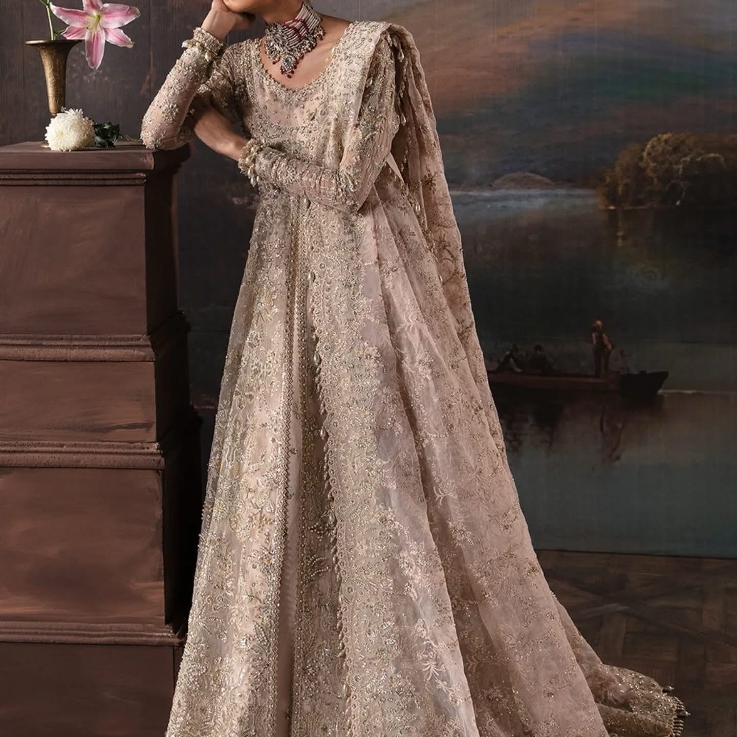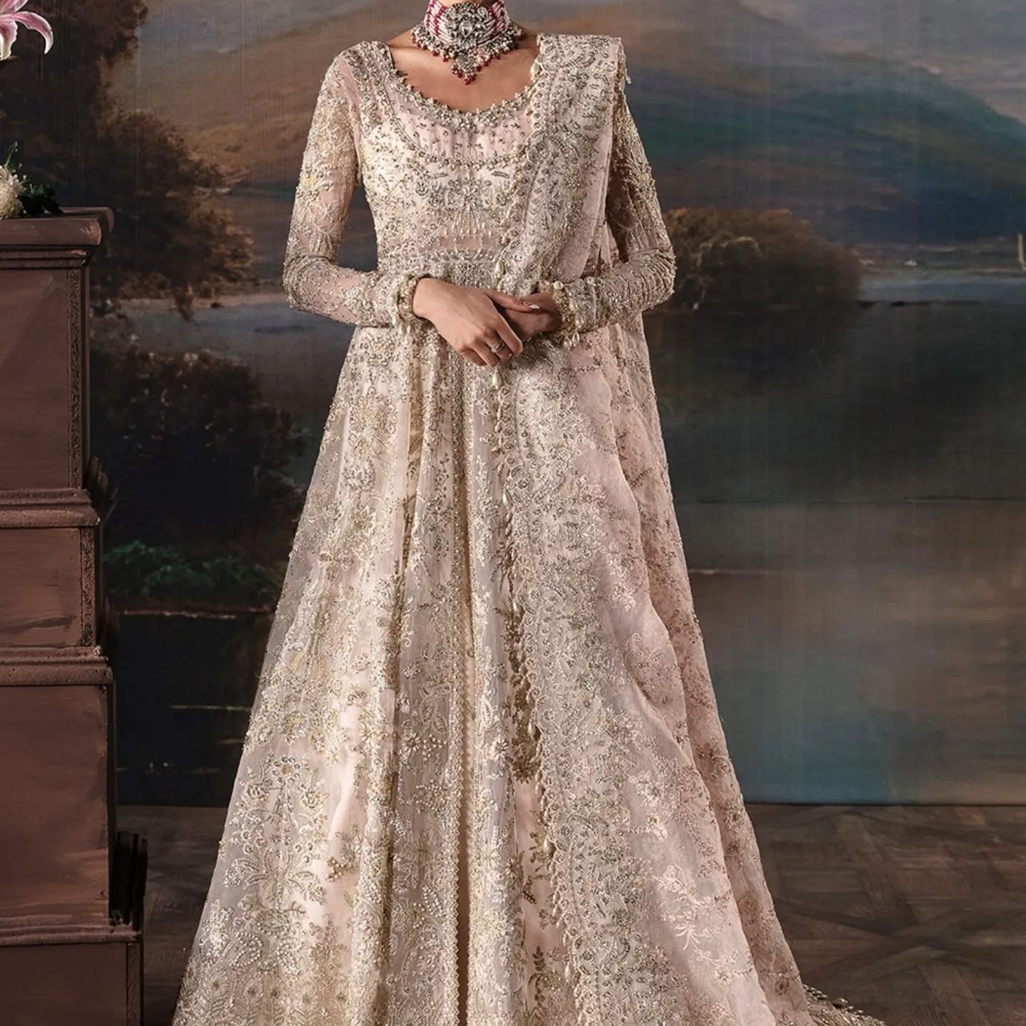 - Contains: Front Split Gown, Dupatta, Inner