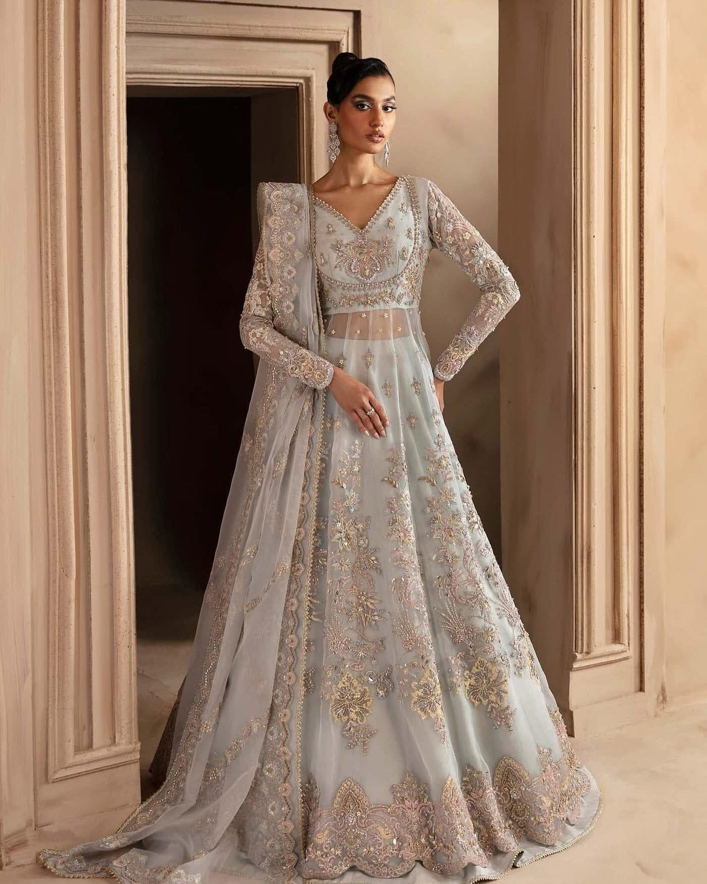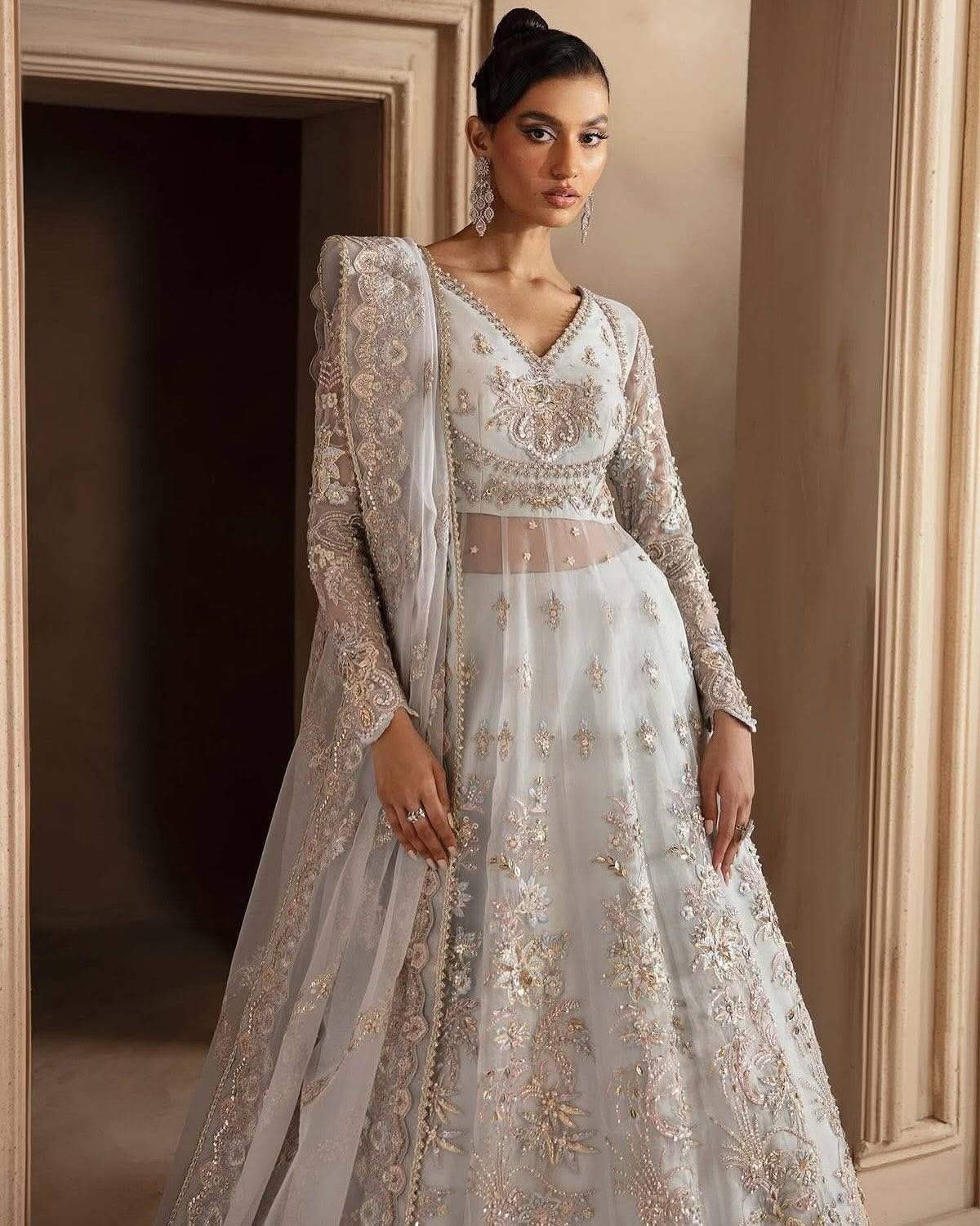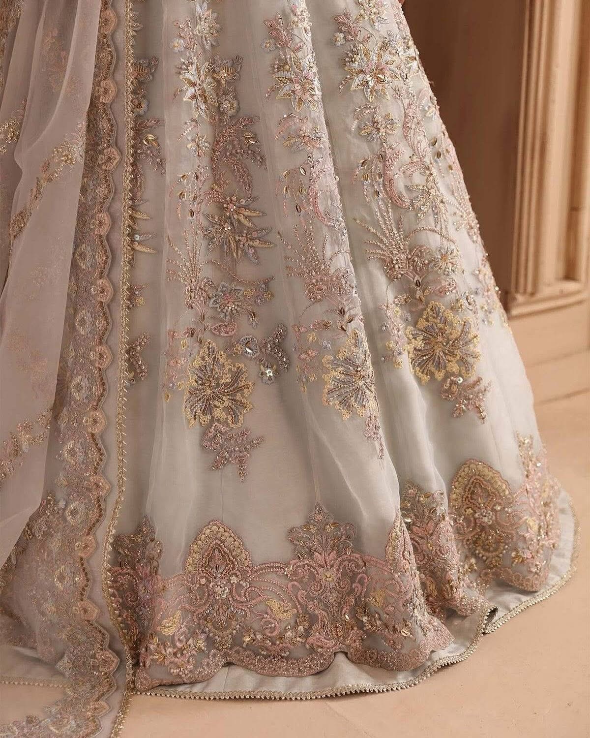 - Organza Embroidered Hand Embellished Front Body: 26″