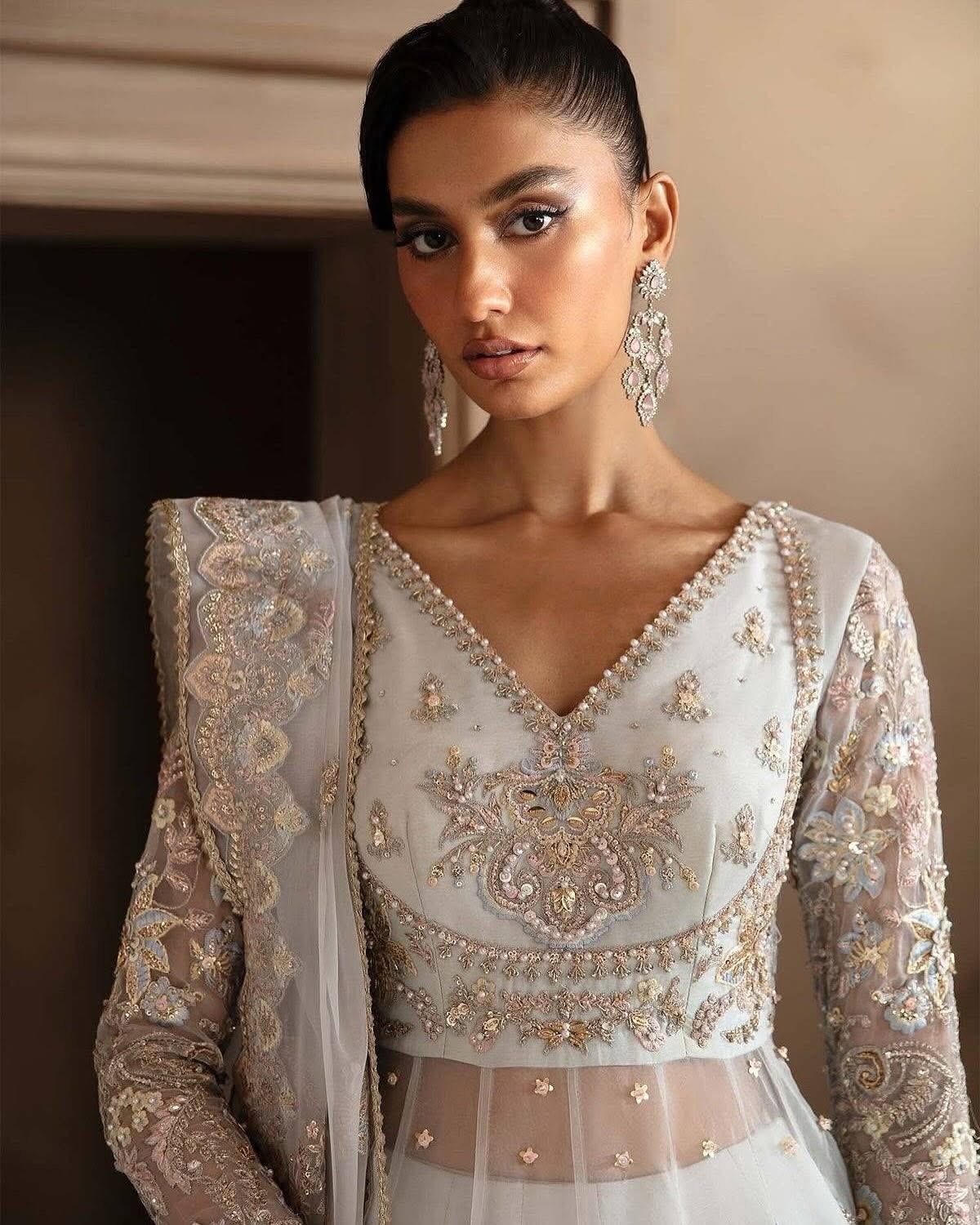 - Organza Embroidered Hand Embellished Sleeves: 26″