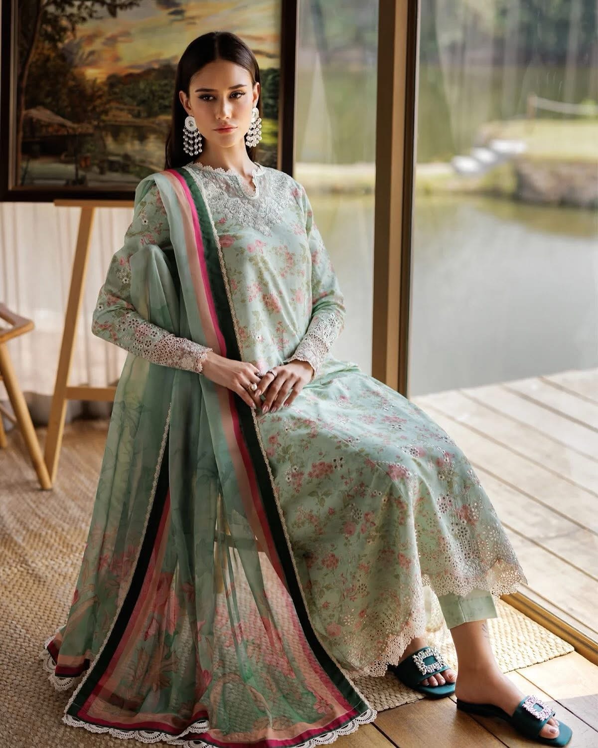 - PRINTED CHIKANKARI LAWN SLEEVES