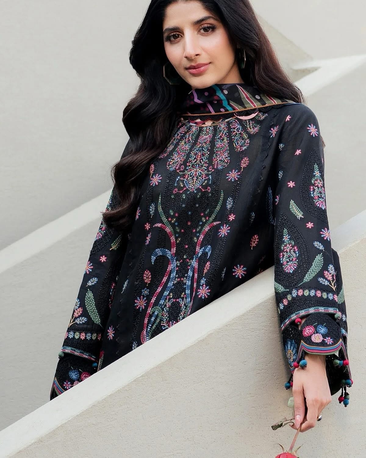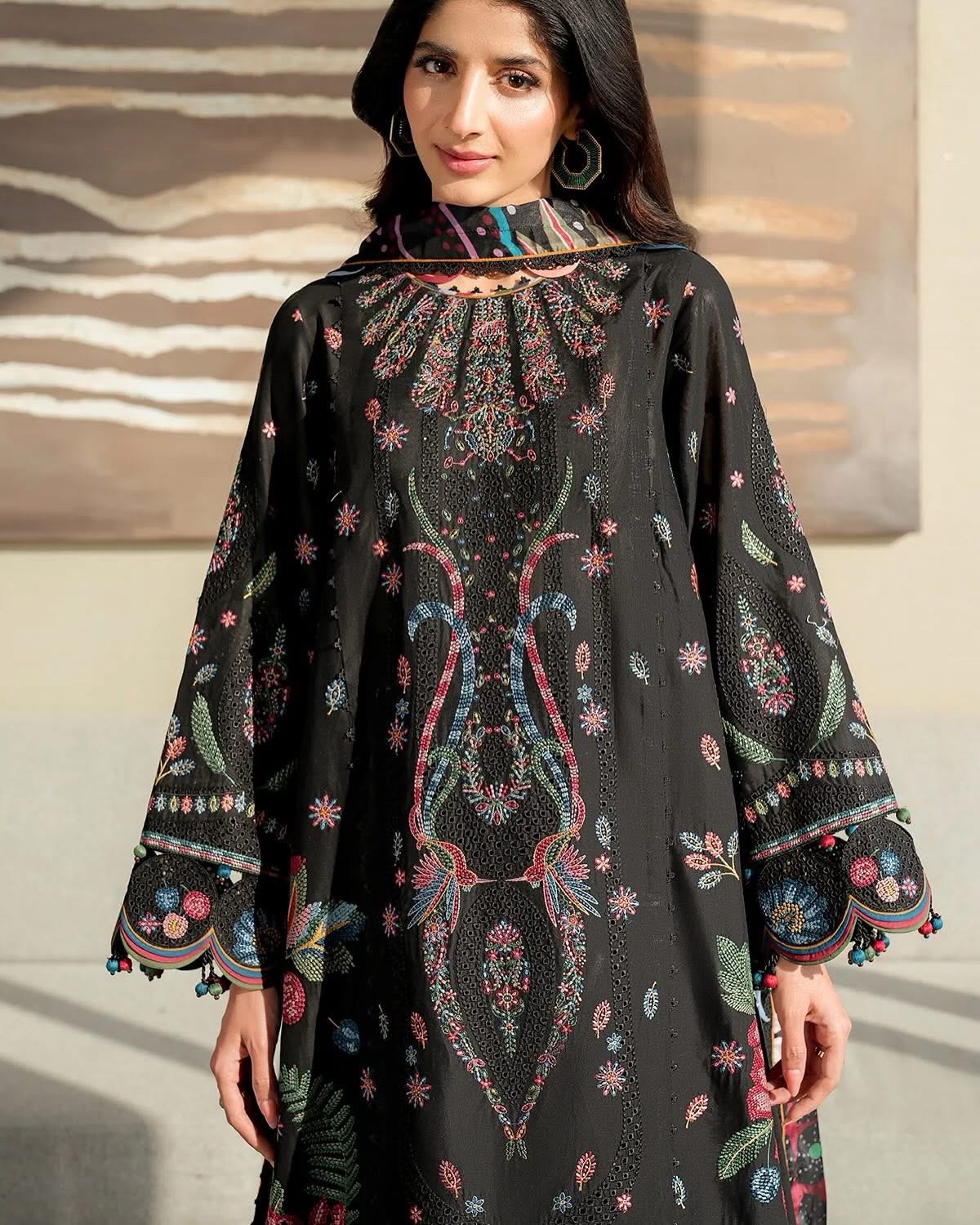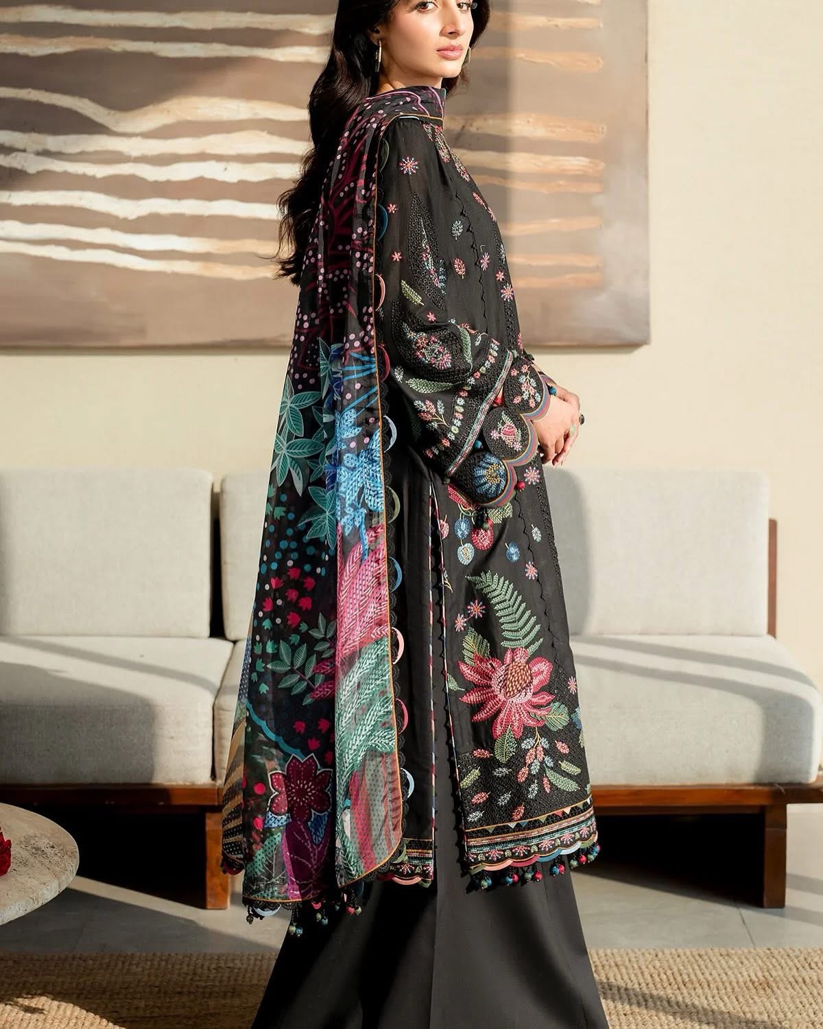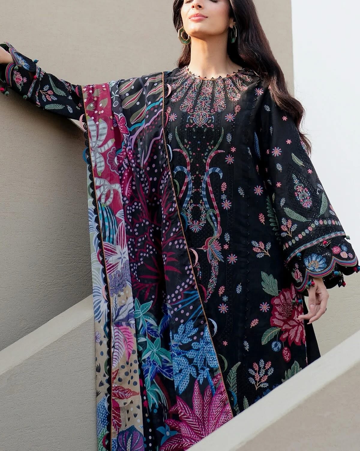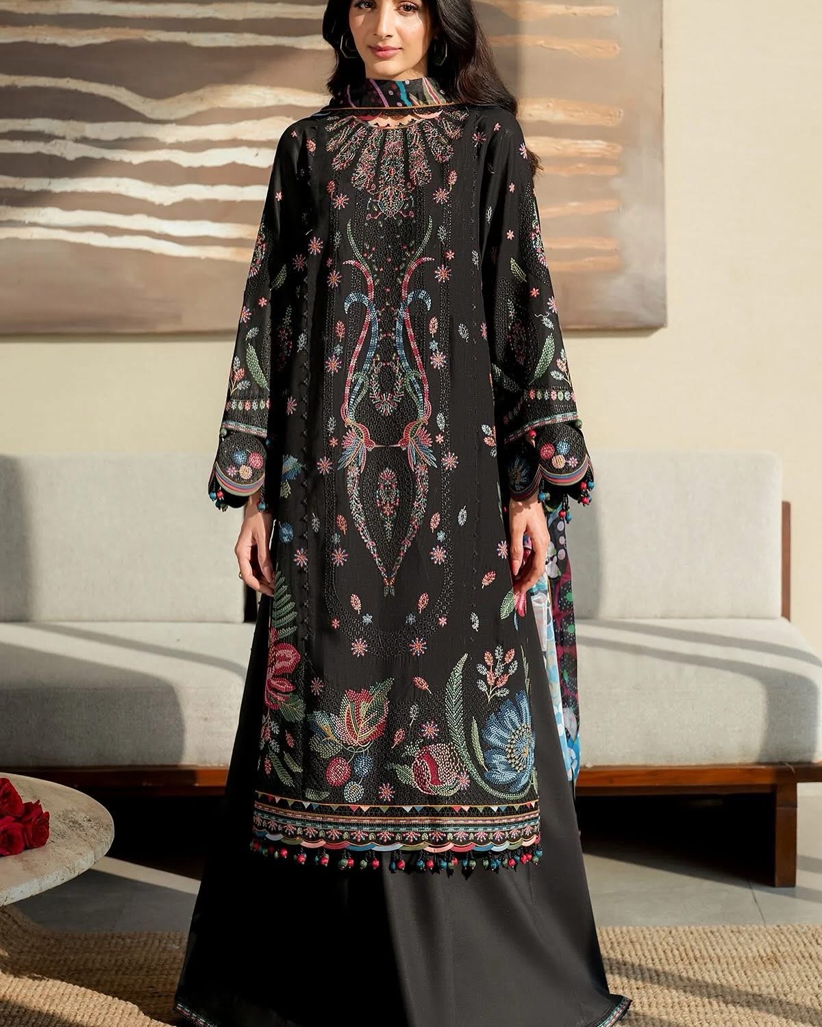 Add elegance to your wardrobe with our Embroidered Luxury Lawn SL25-D10. Featuring intricate embroidered front, side panels, sleeves, back center panel and border, as well as a beautiful digital printed silk dupatta. Complemented by dyed lawn and cambric details, this luxury lawn will elevate your style.