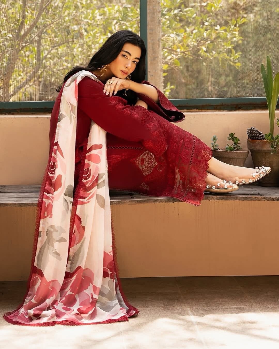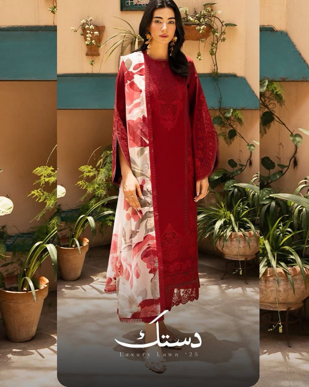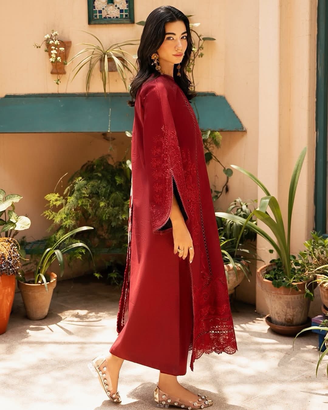 Step into sophistication with Izel’s Red Embroidered Lawn Dress, a standout piece from our exclusive collection. This stunning dress features intricate embroidery on the front center, left, and right panels, enhanced by an organza patch neckline and delicate organza motifs. The embroidered hem borders add a touch of luxury, while the beautifully embroidered sleeves complete the look with finesse. Paired with plain trousers for a balanced silhouette and a printed chiffon dupatta that adds an elegant flair, this dress is perfect for any occasion. Experience the perfect blend of comfort and style with this exquisite ensemble. Shop now to elevate your wardrobe with Izel’s timeless fashion.
