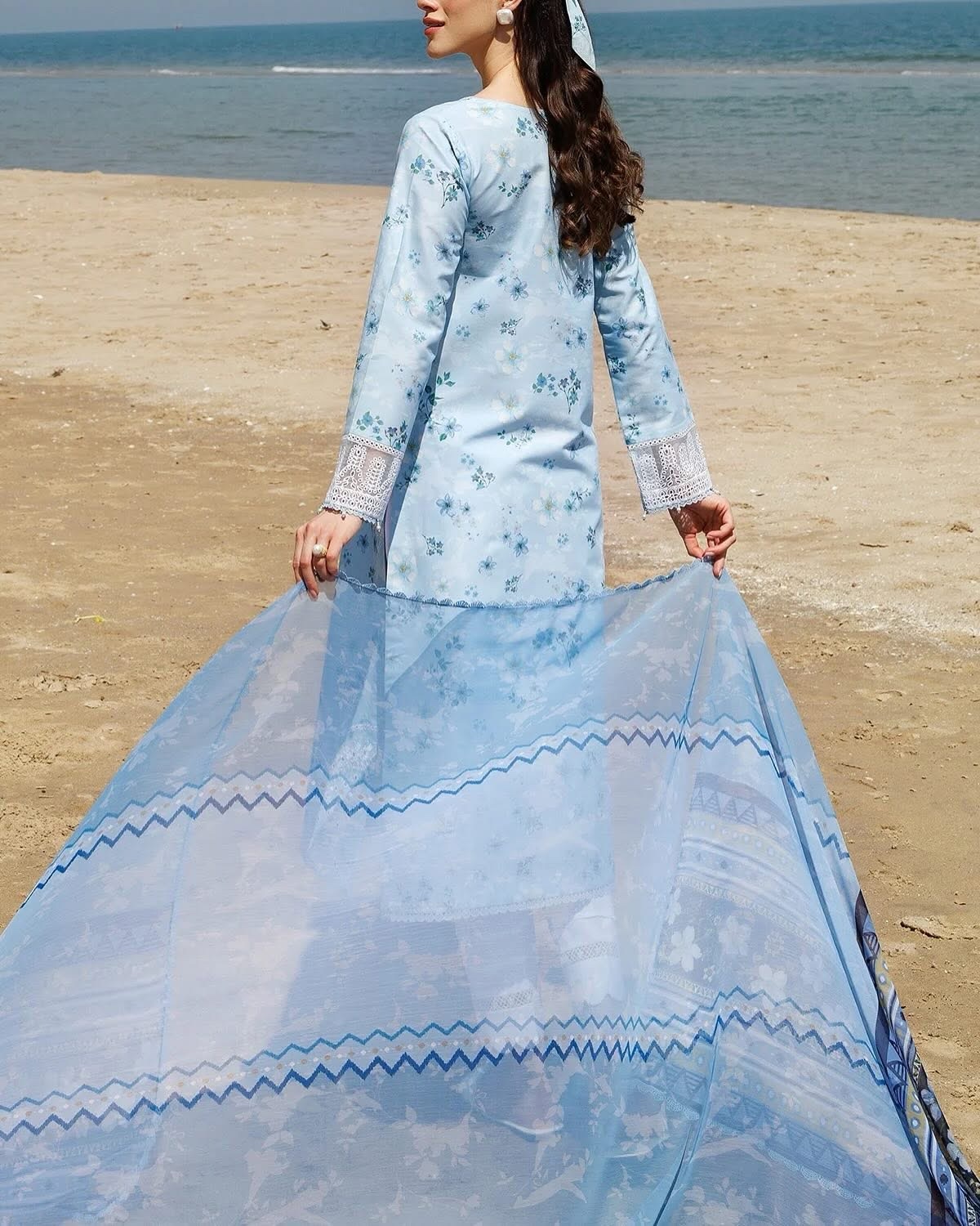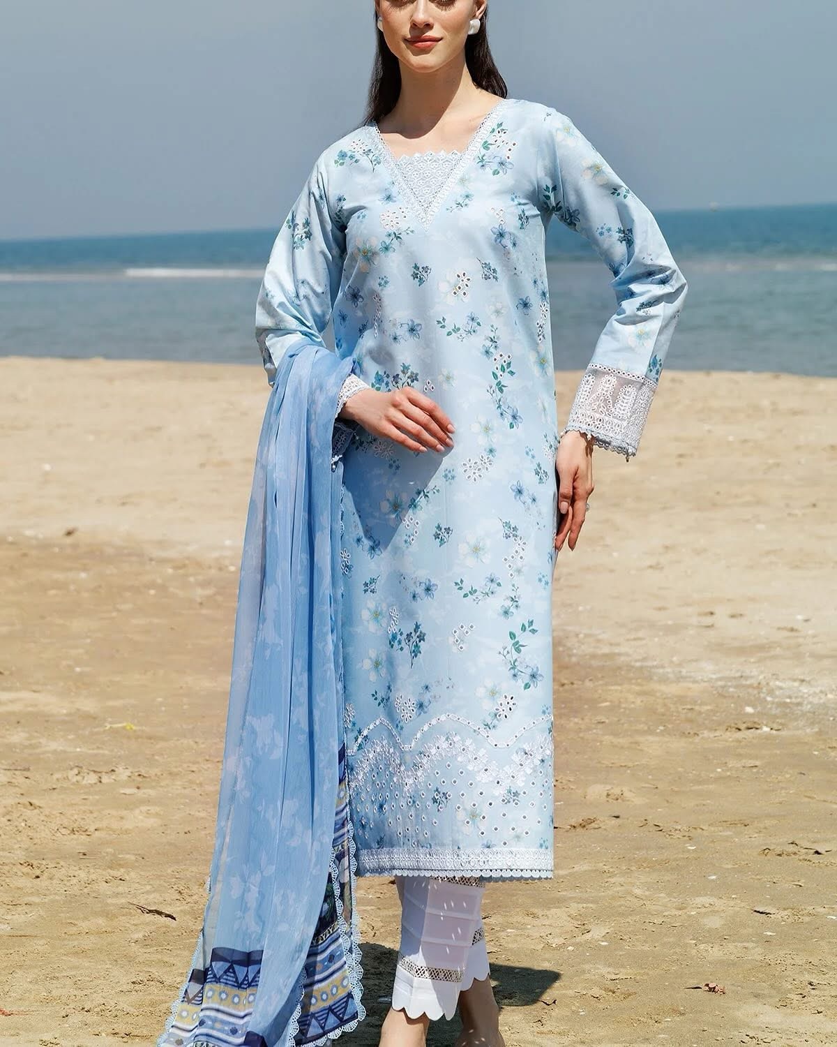 Digital Printed Borer Embroidered Lawn Front (1 Yard)