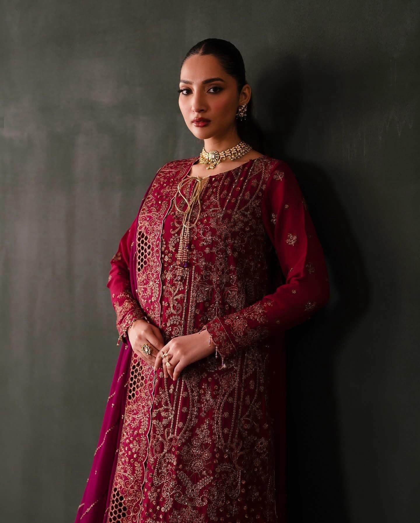 Chiffon Embroidered Sleeves.